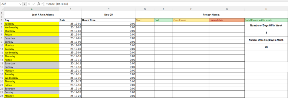 FULL VERSION - Excel Work Hours template
